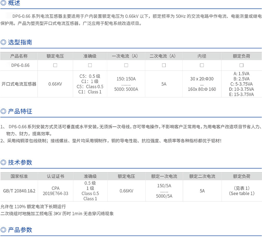 DP6-0.66系列電流互感器主要適用于戶內(nèi)裝置額定電壓為0.66kV以下,額定頻率為50Hz的交流電路中作電流、電能測量或繼電保護用。產(chǎn)品為塑殼型開口式電流互感器,廣泛應(yīng)用于配電系統(tǒng)改造項目。產(chǎn)品詳情